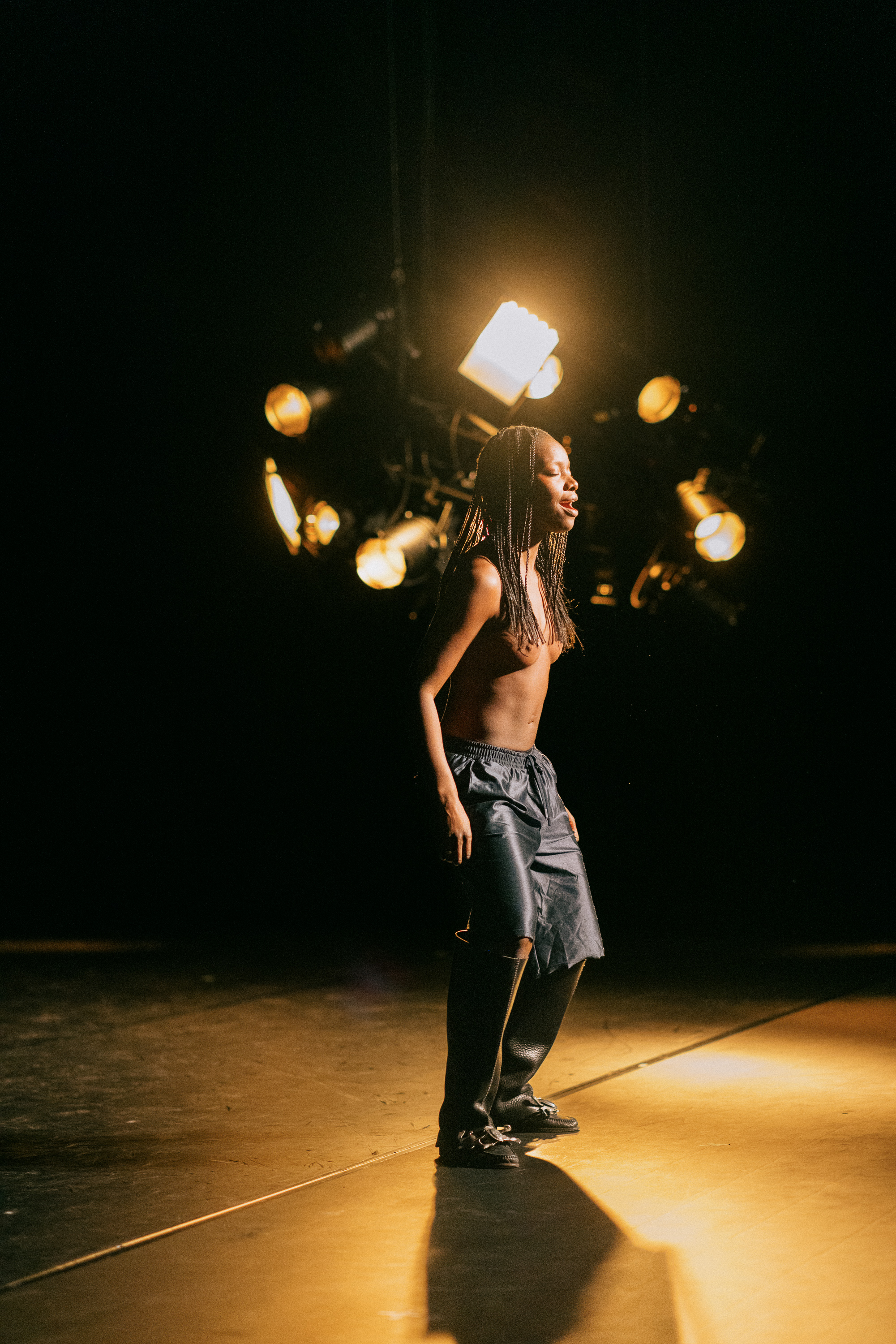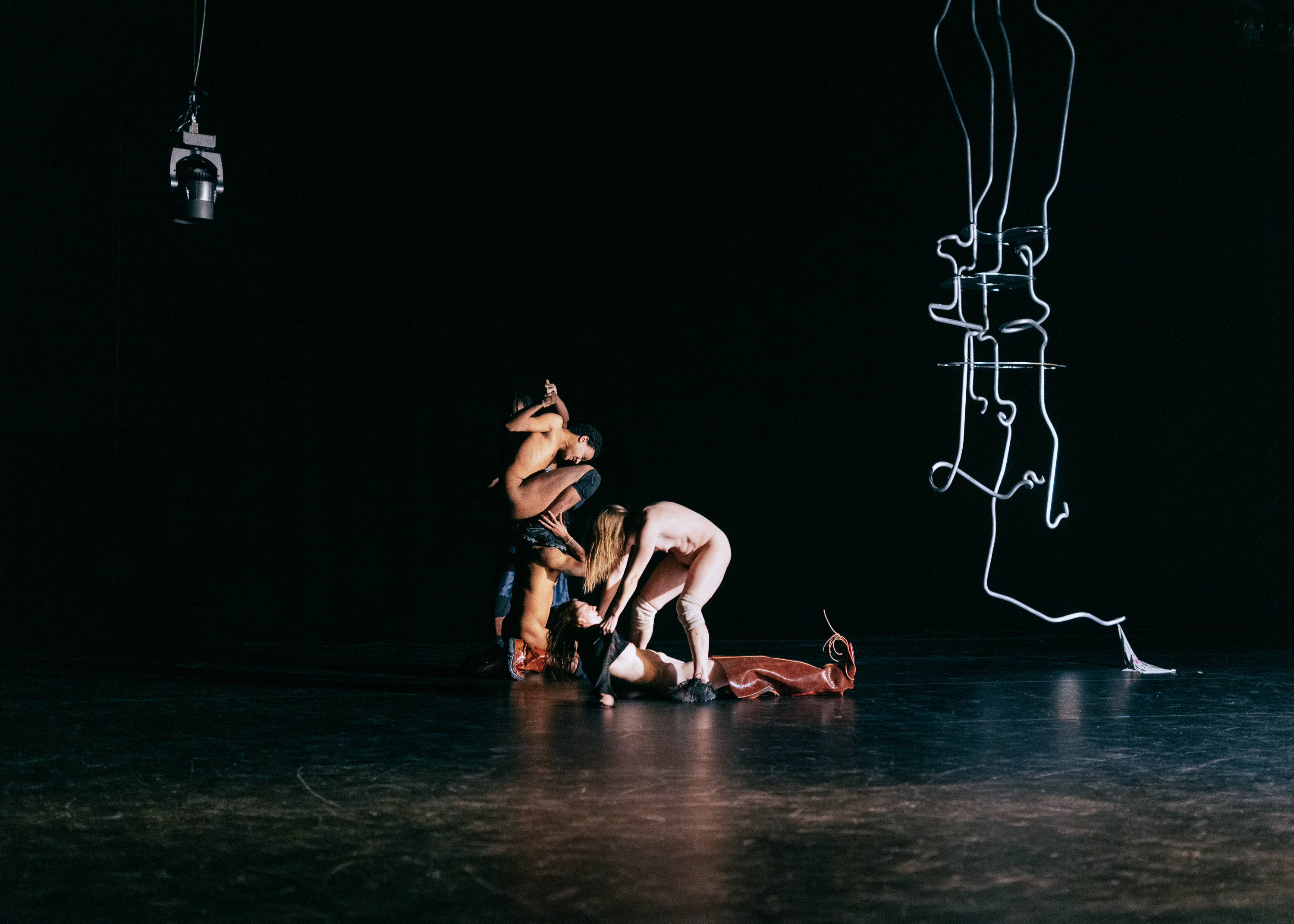 Sweet Spot is the last part of a trilogy of works which includes the solo piece Batty Bwoy (2022) playing with the fictions surrounding the queer body and the group work Undersang (2024) that takes shape as a collective ritual in the forest. Together, these works plunge into how the body can be a site of ambivalence. Where identity and power are constantly negotiated and mutating, unraveling a porous and unstable surface opening up for rituals, new ways of togetherness and uncanny play.